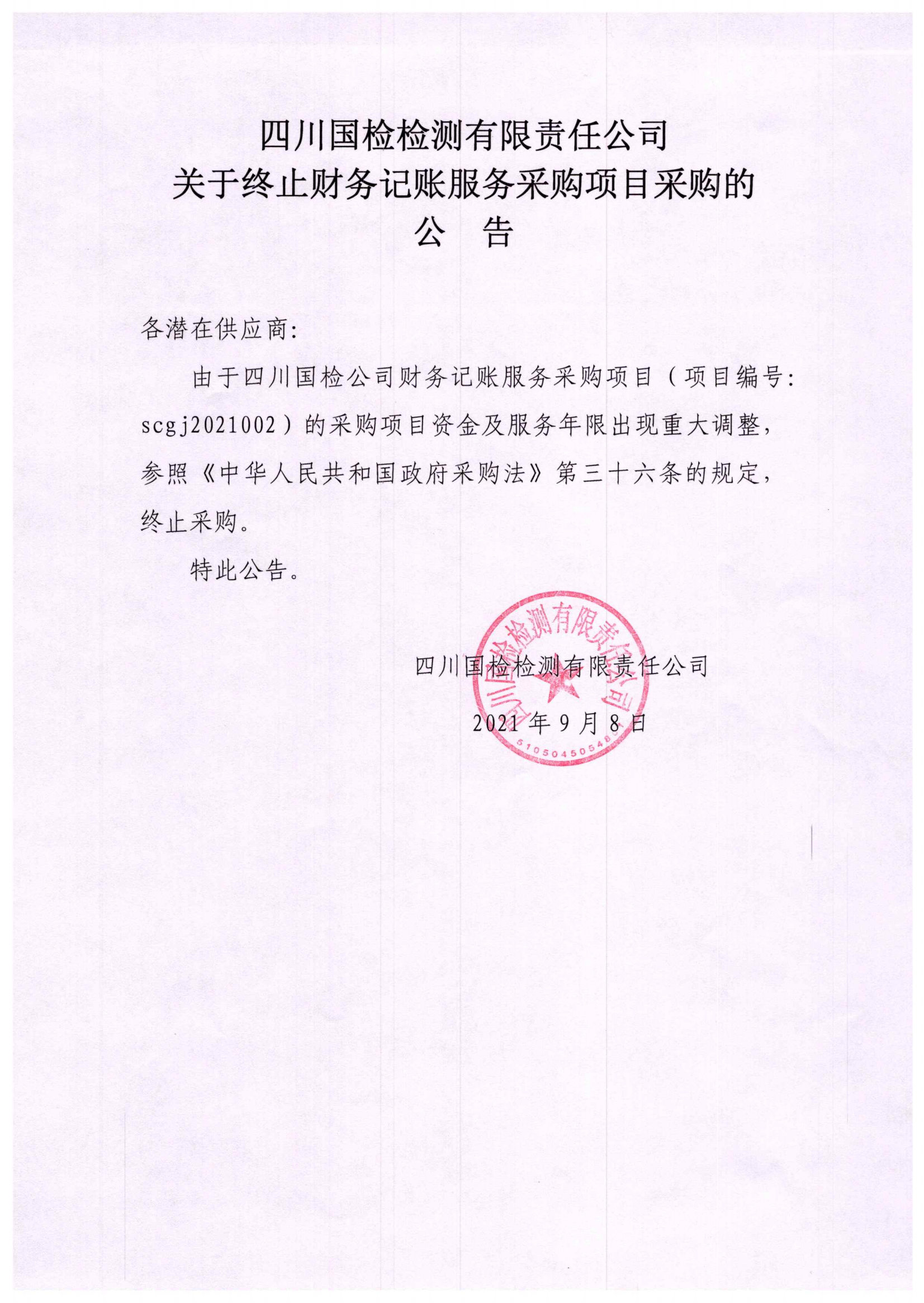 四川國檢檢測有限責任公司關(guān)于終止財務記賬服務采購項目采購的公告.png